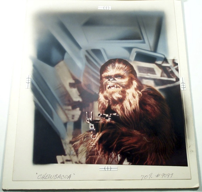 At a first glance, the photo does not seem to have been altered which is a testament to the skill of the airbrush artists at Kenner. However, closer inspection reveals that the photo has been extensively altered. The background has been extensively altered and ‘softened’ to ensure the image of Chewbacca stands out. The level of airbrushing has rendered the background virtually unrecognisable, while keeping Chewbacca prominent and true to his film likeness.